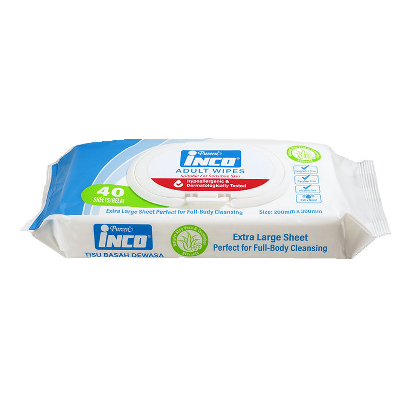 INCO BY PURAGE EXTRA MOIST ADULT WIPES 40S