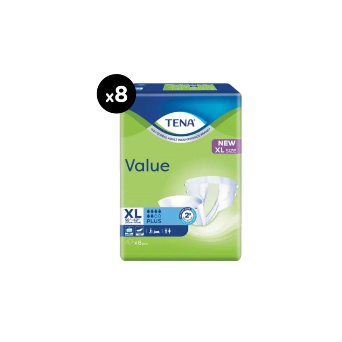 Tena value adult diaper XL (8s x 8)