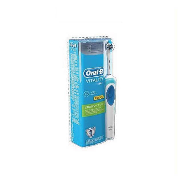 The oral-b vitality electric toothbrush provides a clinically proven superior clean vs. a regular manual toothbrush. the professionally inspired design of the cross action toothbrush head surrounds each tooth with bristles angled at 16 degrees, and 2d cleaning action oscillates and rotates for better plaque removal than a regular manual toothbrush. an in-handle timer helps you brush for a dentist-recommended 2 minutes.